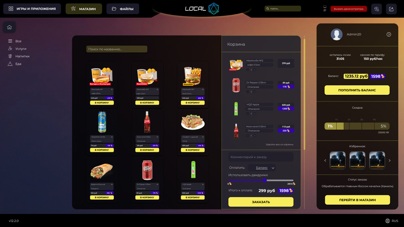 Клиентская часть (Shell) – также представляет собой приложение, которое устанавливается на все компьютеры для клиентского пользования. После установки Shell на ПК, клиент при входе видит только оболочку и не имеет доступа к рабочему столу, настройкам и панели управления Windows. В дальнейшем запуск приложений, учет времени, покупка абонементов, регистрация личных аккаунтов и другие действия пользователя выполняется через данную оболочку.